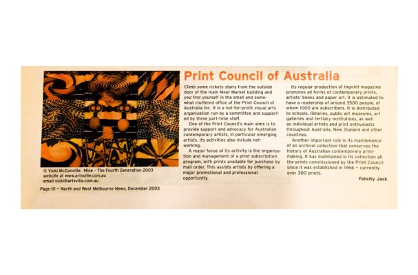 ‘…kaleidoscopic effect… it’s mandala like images…a perfect contemporary rendering of this ancient symbol ..’ Lesley Duxbury, RMIT University, 2004
