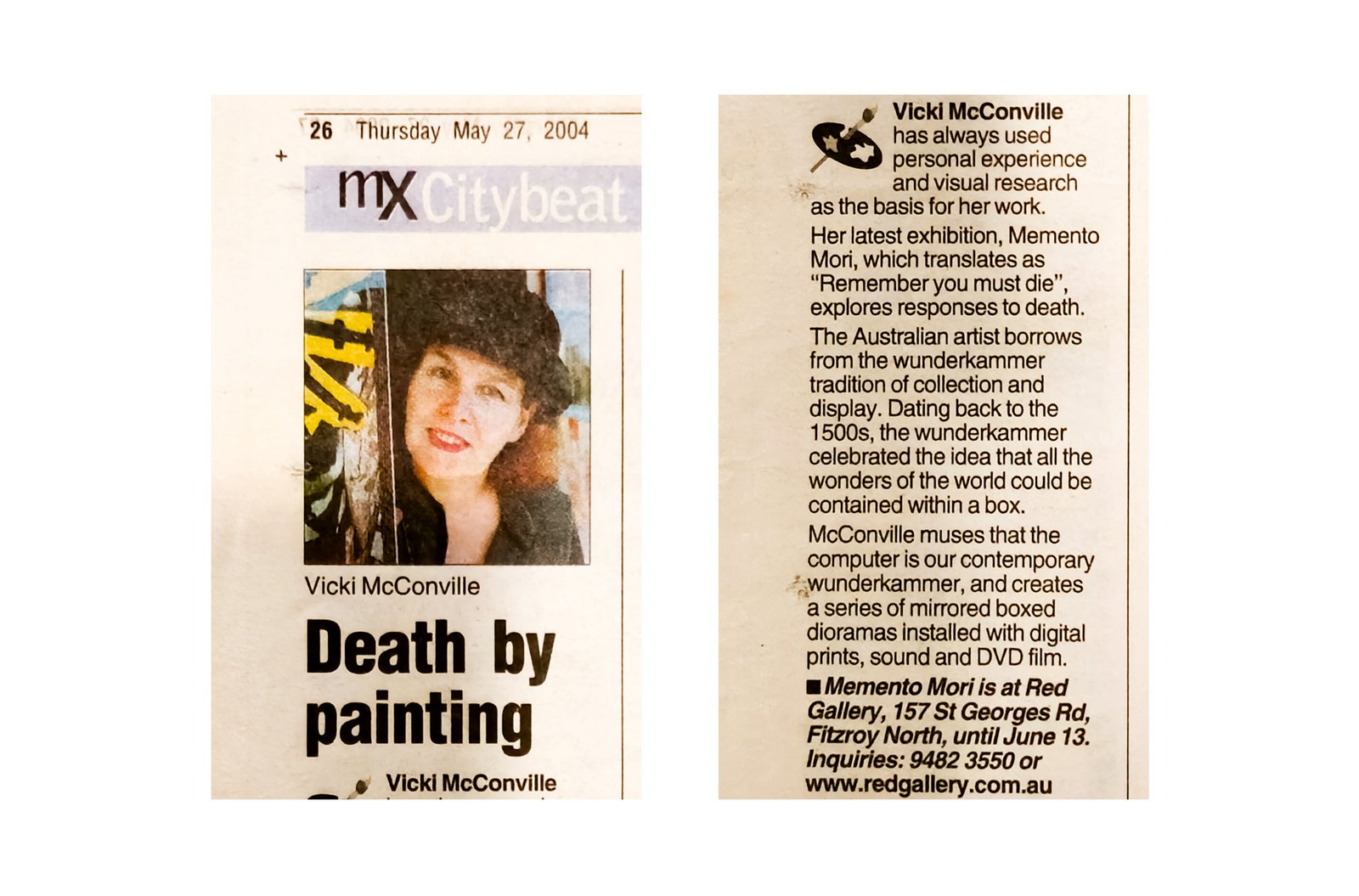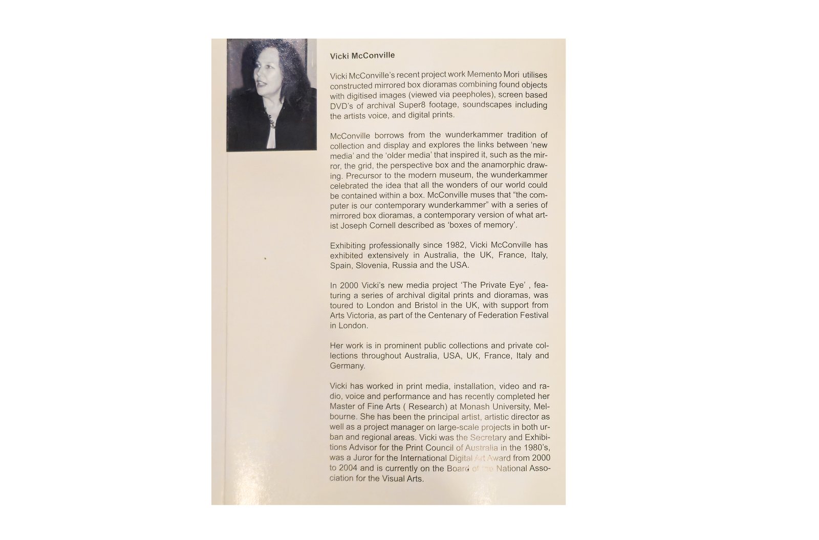‘…Behold, a world opens up. Like a baroque science museum, bizarre and varied, gathered from afar and presented with an intimacy and luminosity – the perception of which is ample reward for submitting a wide eye to narrow oculus ..’ Robert Nelson, The Age, 2005
