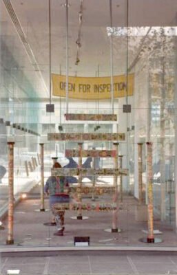 Open For Inspection was installed as part of the Domain of the Other exhibition at the National Gallery of Victoria, Australia, in 1994 and later at the Grand Central Gallery in Melbourne, Australia, and the Australia Felix Exhibition, Benalla, Australia.