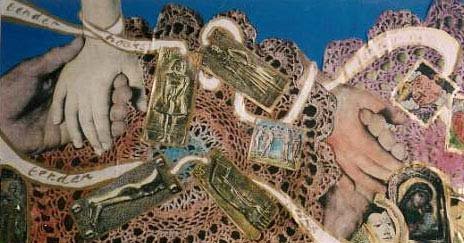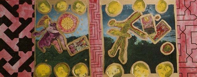 The collages evolved into a series of larger scale works that incorporated personal images, icons and soundtracks.
